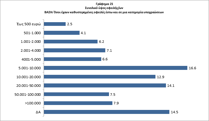 Όσον αφορά το ύψος των οφειλών των επιχειρήσεων που έχουν οφειλή/ές (Γράφημα 21):