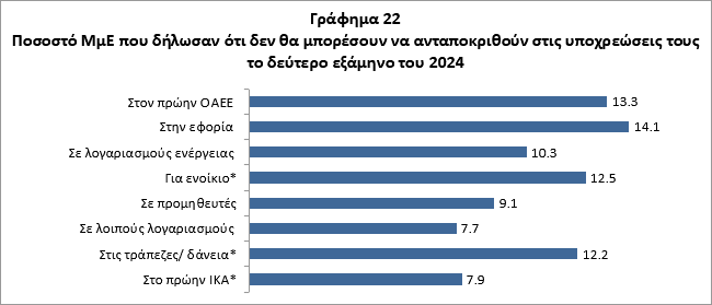• το 13,9% των μικρών και πολύ μικρών επιχειρήσεων δήλωσε πως έχει ληξιπρόθεσμες οφειλές προς τον πρώην ΟΑΕΕ,